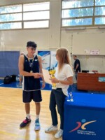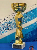 את הגביעים העניקה הגב’ תמי רביב המפקחת על החינוך הגופני במחוז חיפה לקפטנים של אורט מוצקין – ירין זמיר ושקד מלכה.