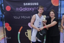 שי לבדי, תיכון בליך MVP המשחק המרכזי – מקבל גביע ומתנה ממנהלת השיווק של סמסונג ישראל – צילום: ארז עוזיר